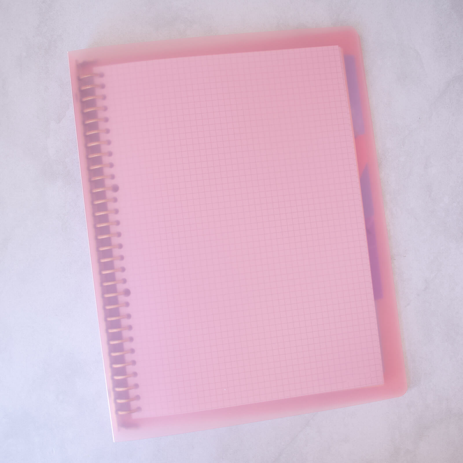 Cuaderno A4 con diseño minimalista y funcional 🤍. Cuenta con cubierta translúcida flexible de plástico resistente, fácil de limpiar 🧼 y resistente a las manchas. Su diseño envolvente cubre completamente el cuaderno, incluido el mecanismo, brindando un acabado limpio y moderno ✨.