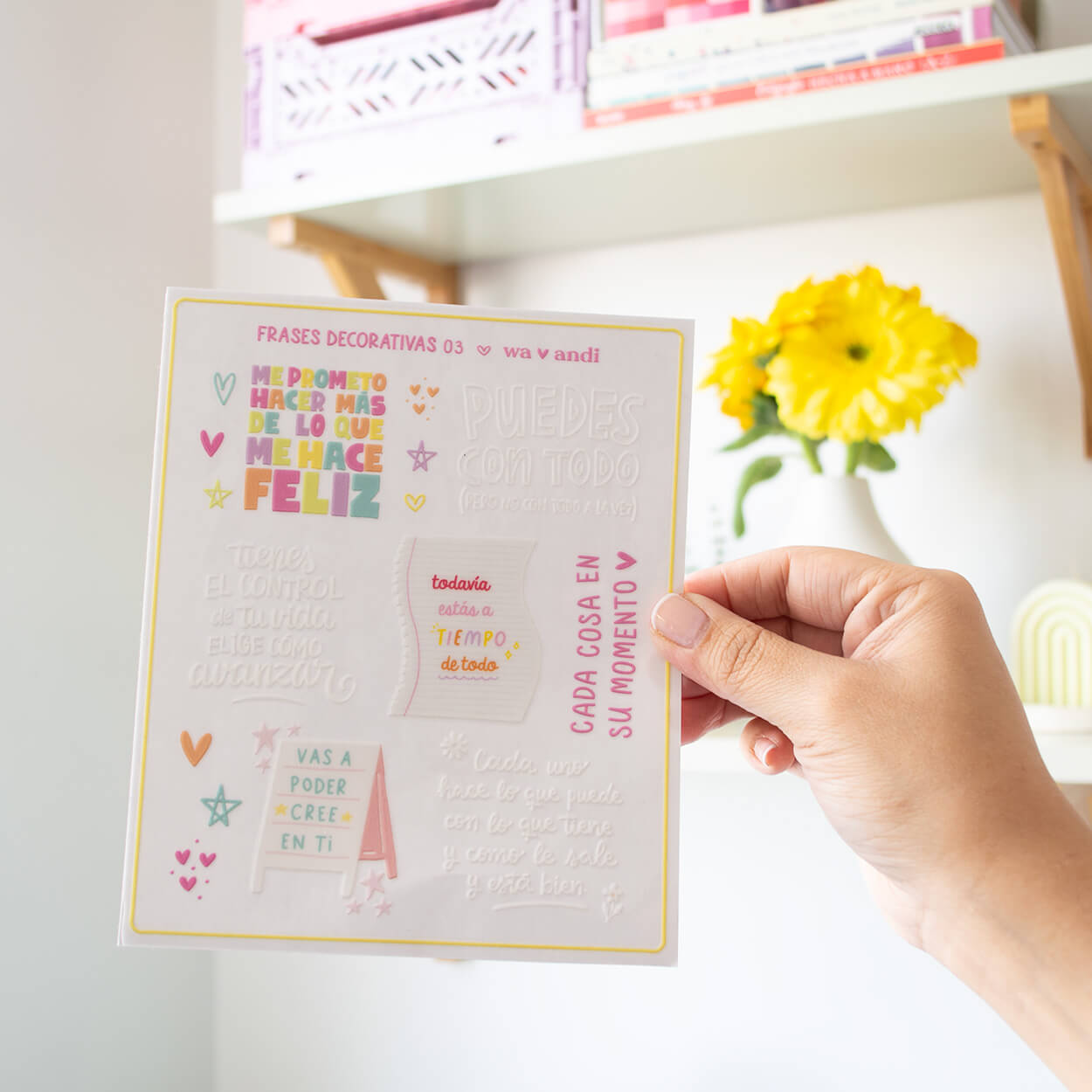 – Retira el plástico… ¡Listo! ✨ ¡disfruta tu sticker! 💖