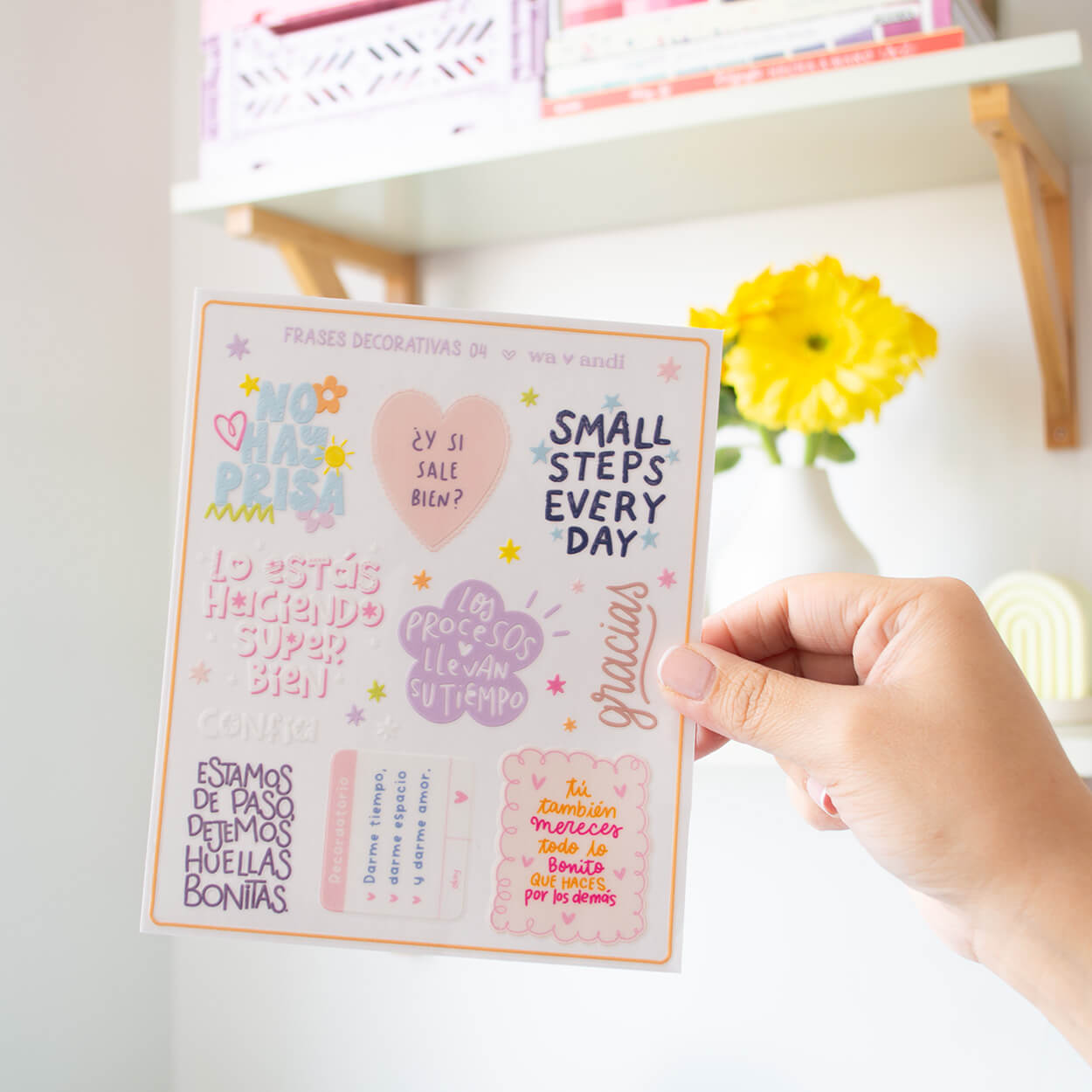 Nuestros stickers plásticos están diseñados para acompañarte en tu día a día y darle vida a todo lo que uses. Puedes aplicarlos en cualquier superficie lisa como botellones, espejos, tazas, cuadernos y más 💖